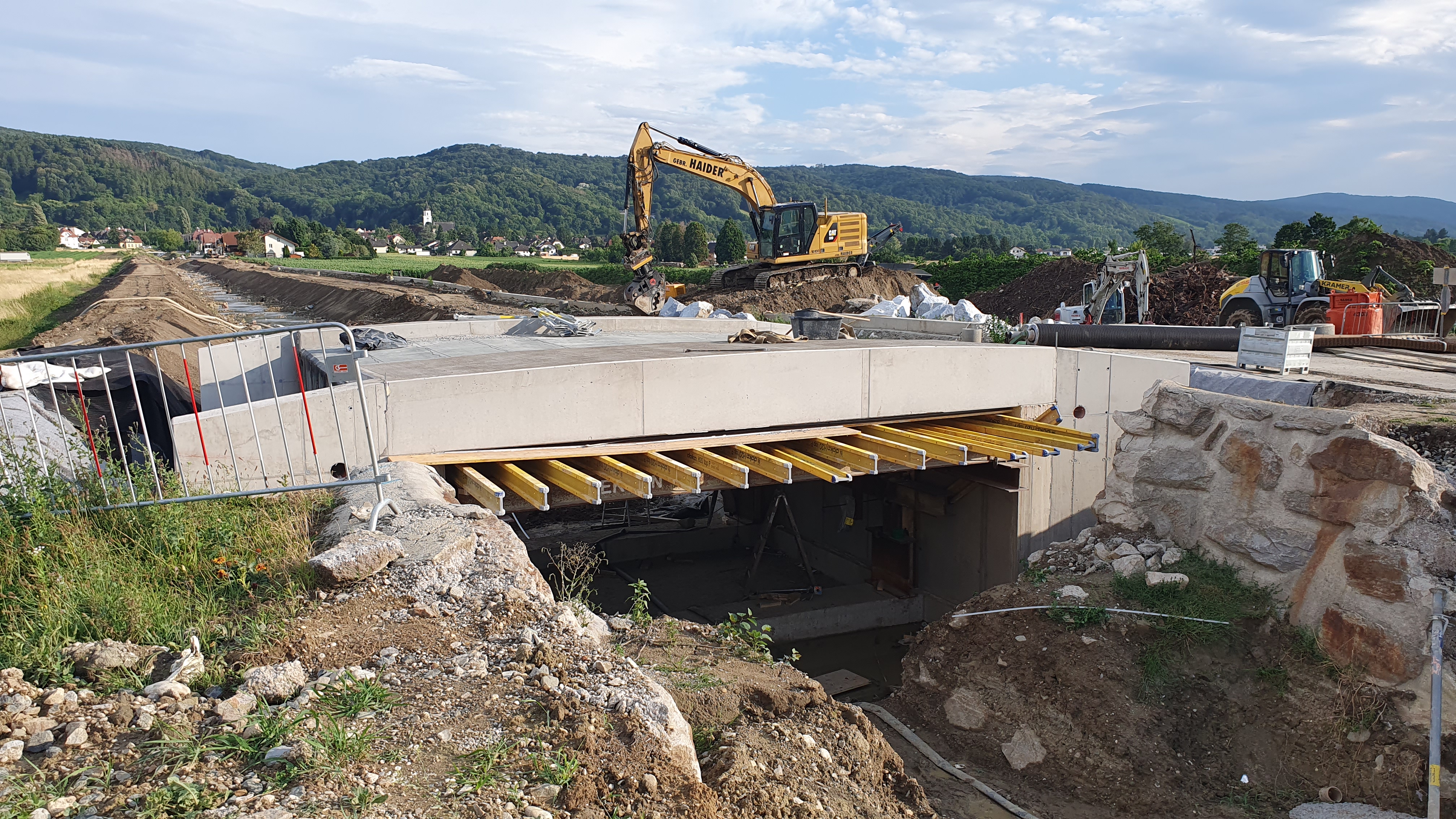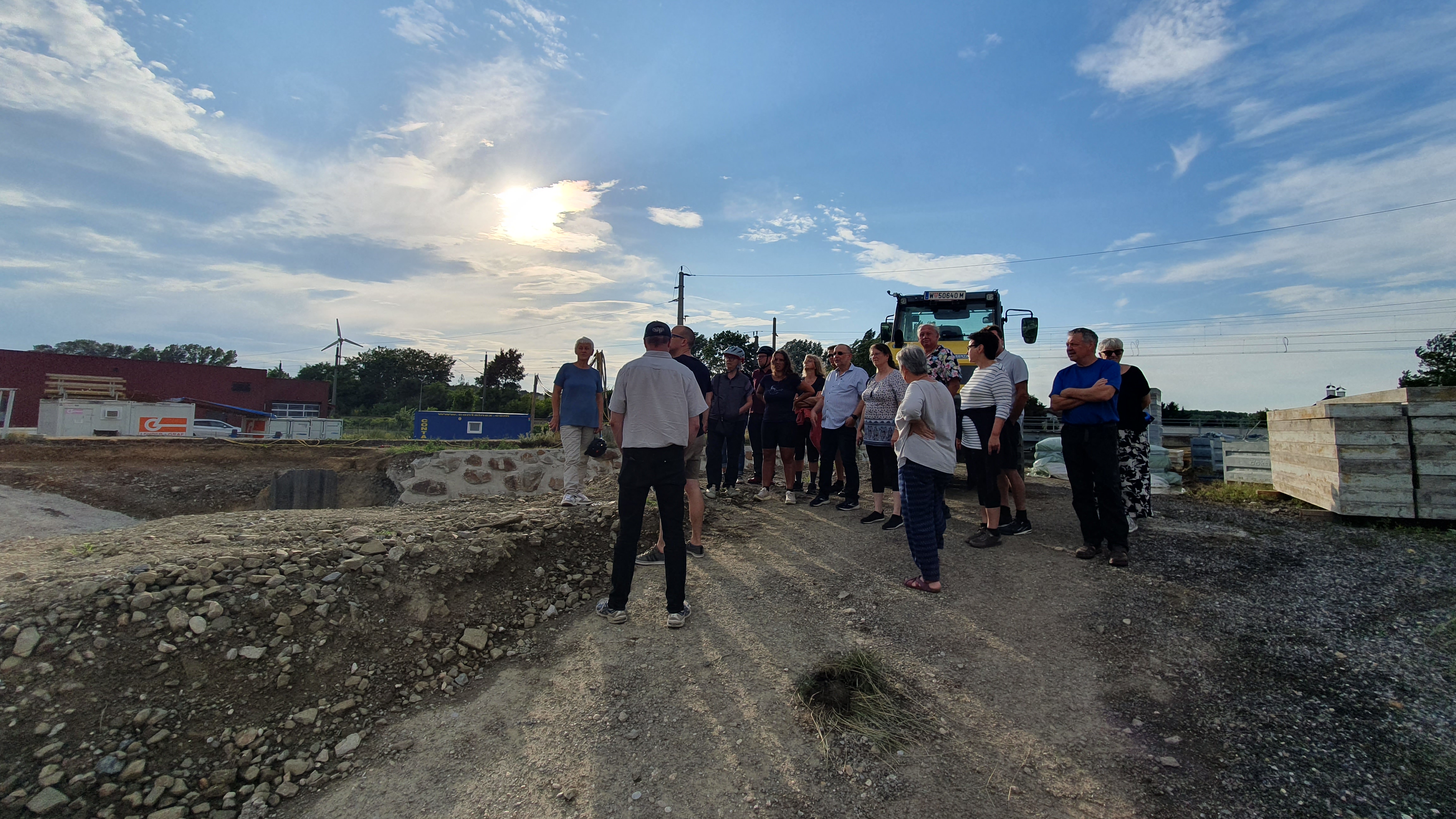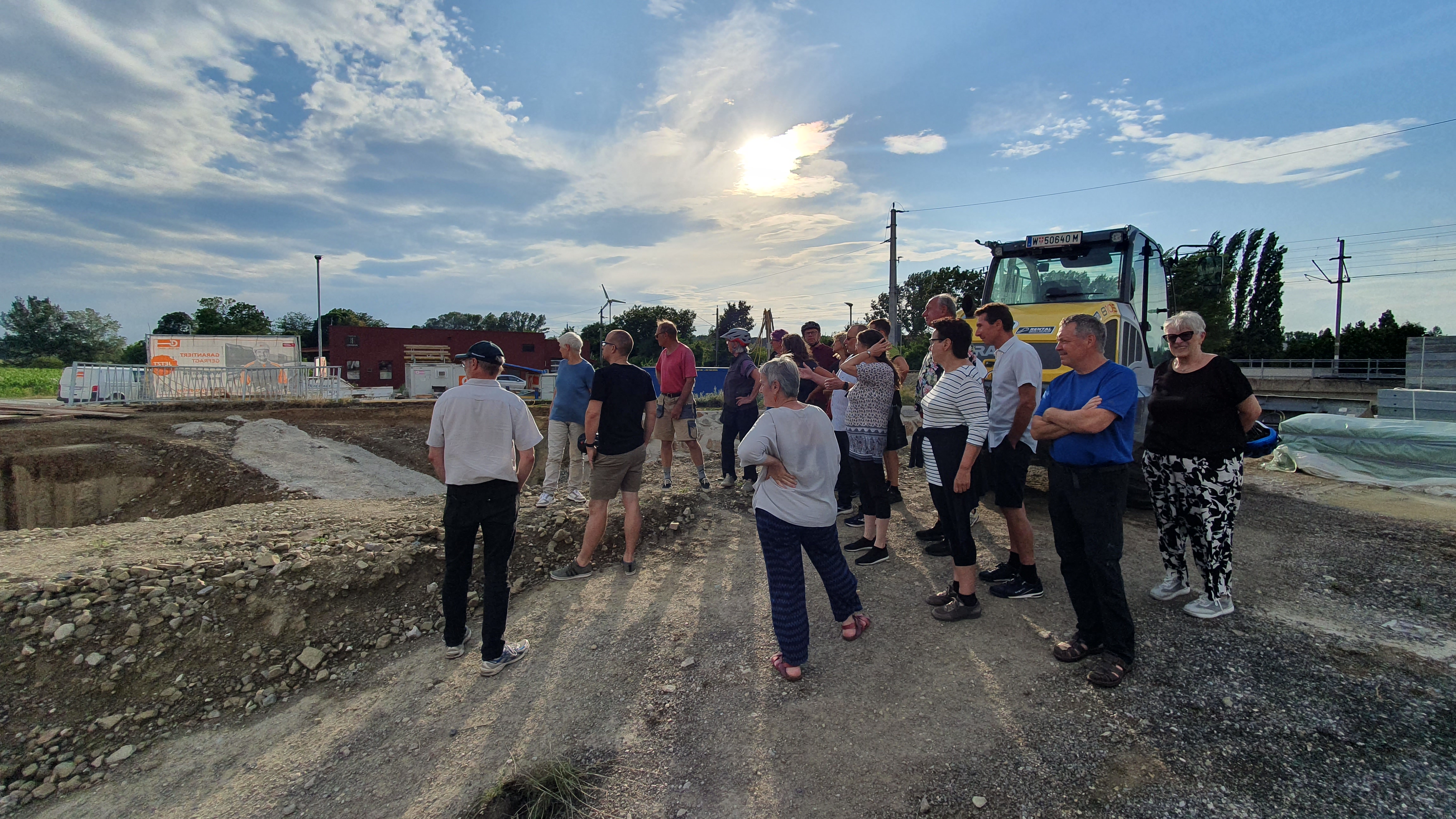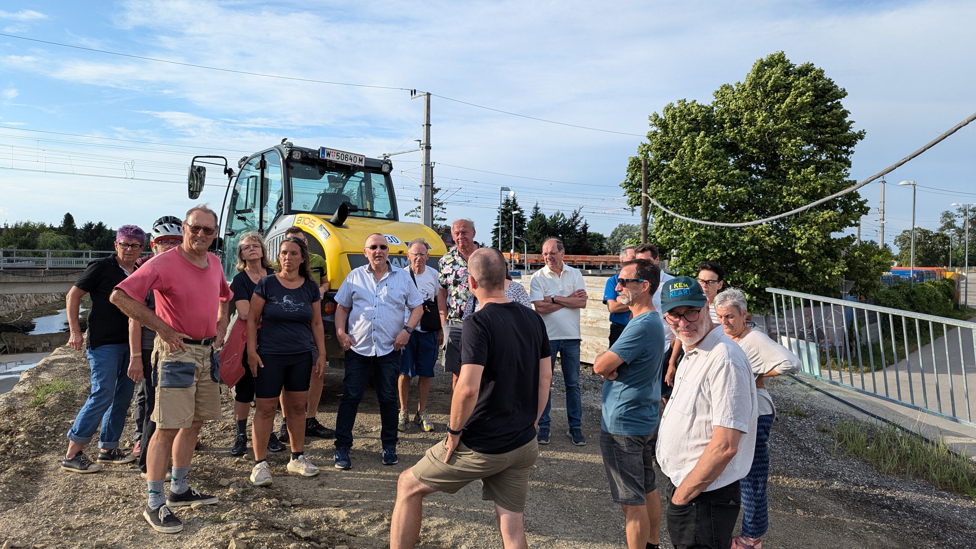 Startpunkt war die Volksschule in St. Andrä-Wördern. Amtsleiter Peter Ohnewas stellte die PV-Anlage und die Speicher für einen Notbetrieb vor und beantwortete zahlreiche Fragen der interessierten Teilnehmner:innen. Weiter ging es über den Dorfplatz mit kurzem Halt bei der dort eingemieteten Foodcooperative „Marktplatz“, weiter zur Baustelle am Hagenbach. Peter Ohnewas informierte ausführlich über die Bautätigkeiten, Hintergründe und Planung dieses Hochwasserschutzprojekts, das nach dem Hochwasser im September 2024 nachjustiert wurde, um den bestmöglichen Schutz der Wohngebiete zu gewährleisten.